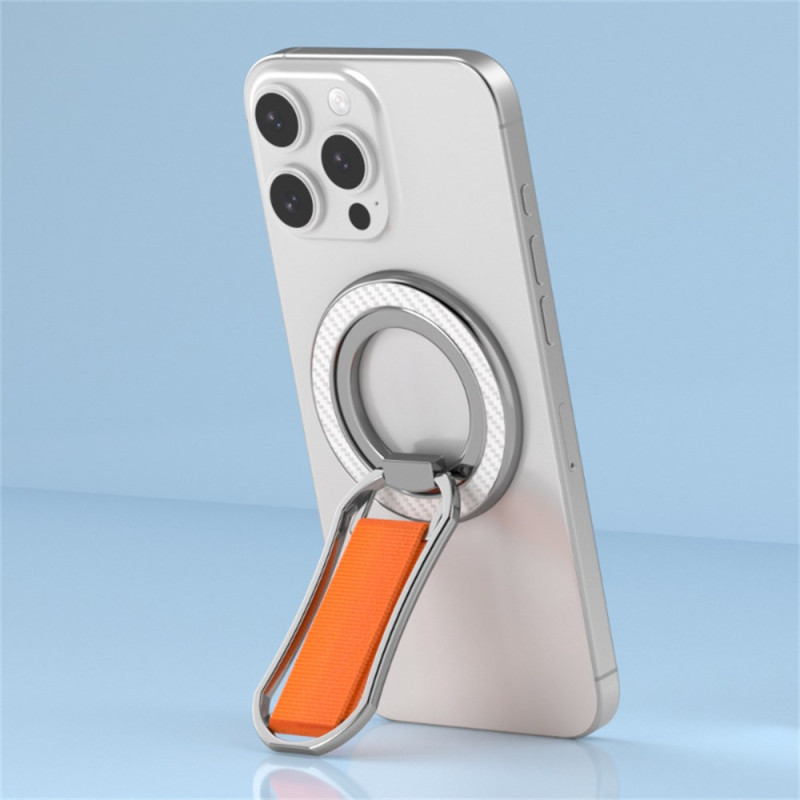 Deze opvouwbare magnetische houderring is ontworpen voor een stevige grip en optimaal comfort voor dagelijks gebruik. Hij is uitgerust met krachtige magneten en biedt een stevige grip op je smartphone of andere magnetische accessoires, terwijl de 360°-rotatie betekent dat je direct de ideale hoek kunt kiezen in staande of liggende modus. De afwerking met koolstofvezelimitatie geeft hem een moderne, eersteklas look, aangevuld met een praktische handriem om te voorkomen dat je hem per ongeluk laat vallen. Hij is compact en veelzijdig en kan ook worden gebruikt als kickstand, veilige grip en magnetische autohouder.