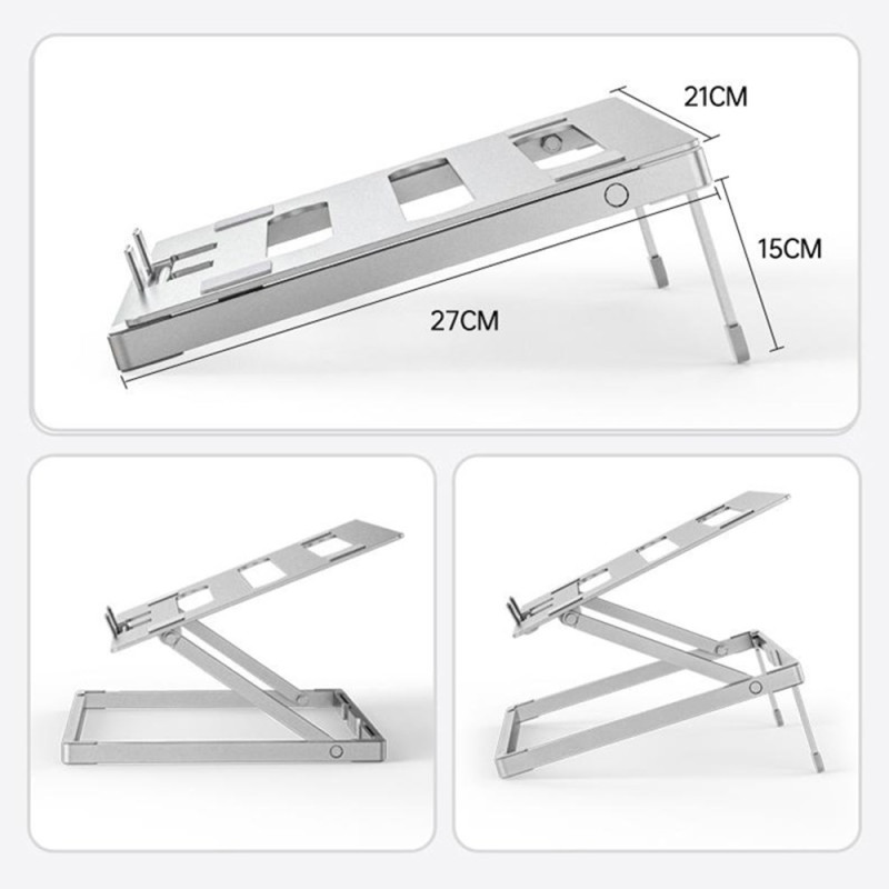 Deze verstelbare laptopstandaard is ontworpen om je werkcomfort te verhogen dankzij de ergonomische verhoging en verstelbare hoek. Hij is gemaakt van een robuuste aluminiumlegering en biedt uitstekende stabiliteit en een hoge belastbaarheid zonder risico op doorzakken. De geperforeerde structuur laat lucht vrij circuleren om oververhitting te voorkomen, zelfs bij langdurig gebruik. Lichtgewicht en opvouwbaar, dus gemakkelijk mee te nemen van kantoor. Ideaal voor het verbeteren van de houding en het verminderen van spanning in de rug, nek en armen.