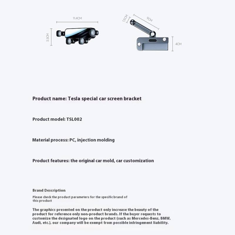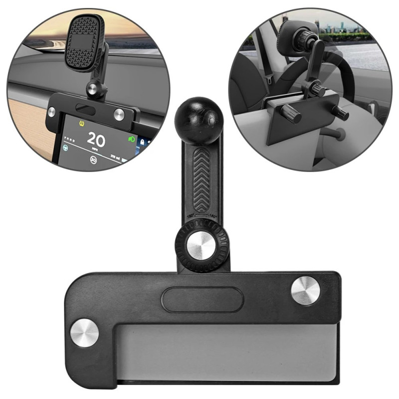 Elegante zwaartekracht telefoonhouder speciaal ontworpen voor het hangende scherm van je Tesla Model 3 of Model Y. Eenvoudige installatie zonder het scherm te beschadigen, verstelbare arm en vrije rotatie van 360°. Anti-vibratie ontwerp om je telefoon veilig te houden tijdens het rijden.