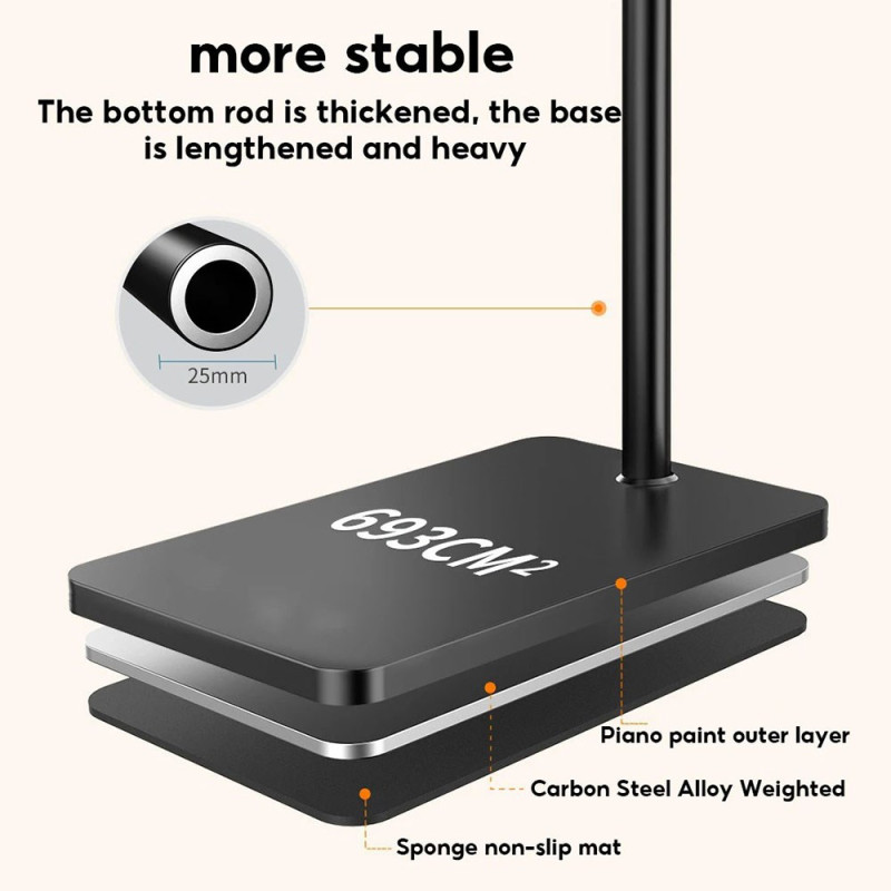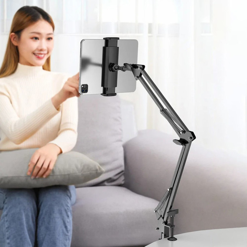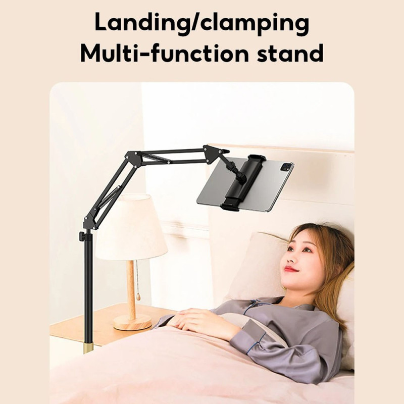 Geniet van optimaal comfort met deze telescopische vloerstandaard, in hoogte verstelbaar tot 1,6 m. De flexibele arm en 360° rotatie zorgen voor een perfecte positionering van je apparaat. Robuust staal en ABS constructie voor maximale stabiliteit.