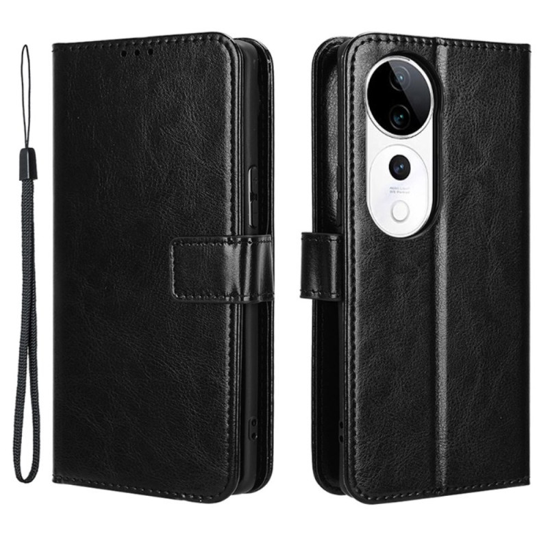Elegante portemonnee van eersteklas PU-leer met crazy horse-textuur. Voorzien van 3 kaartsleuven, 1 geldvak, handsfree houder en magneetsluiting. Volledige bescherming tegen alledaagse stoten met inbegrepen handriem.