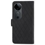 Stijlvolle hoes voor de Vivo V40 5G met doorgestikt ruitpatroon. Bi-materiaal ontwerp combineert PU leer en TPU voor verfijnde stijl en duurzame bescherming. Drie kaartsleuven en geïntegreerd zijvak voor een handige alles-in-één oplossing.