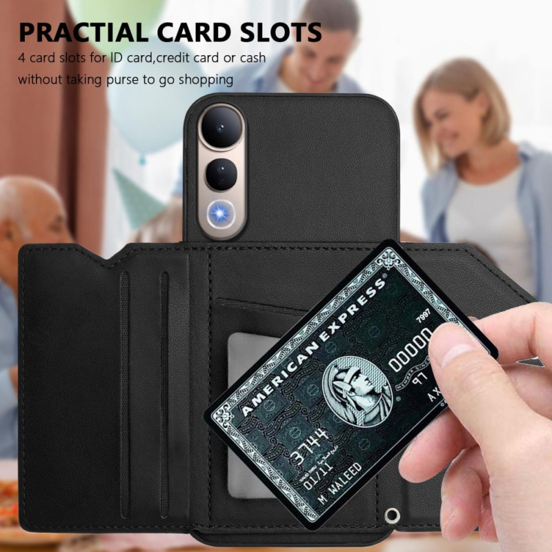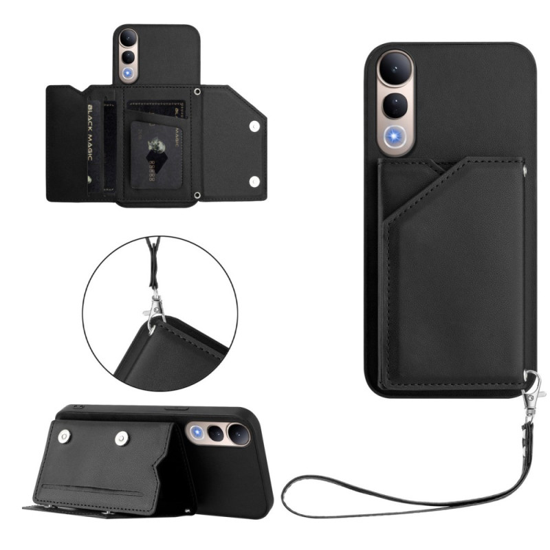 Bescherm je Vivo V50 Lite 5G in stijl met deze multifunctionele hoes. Met geïntegreerde kaarthouders, een verstelbare standaard en een bijpassende handriem combineert hij elegantie en functionaliteit voor dagelijks gebruik.