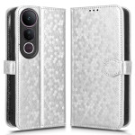 Stijlvolle PU lederen portemonnee hoes met reliëf stippenpatroon voor Vivo V50 Lite 5G. Geavanceerd ontwerp biedt bescherming, praktische opbergruimte voor pasjes en geld, verstelbare standaardfunctie en inclusief riempje voor veilig transport.