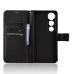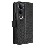 Elegante portemonnee hoes met verfijnde diamantstructuur voor Vivo V50 Lite. Voorzien van kaartcompartimenten, geldvakje, opvouwbare standaard en veilige magnetische sluiting. Volledige bescherming tegen alledaagse stoten en krassen.