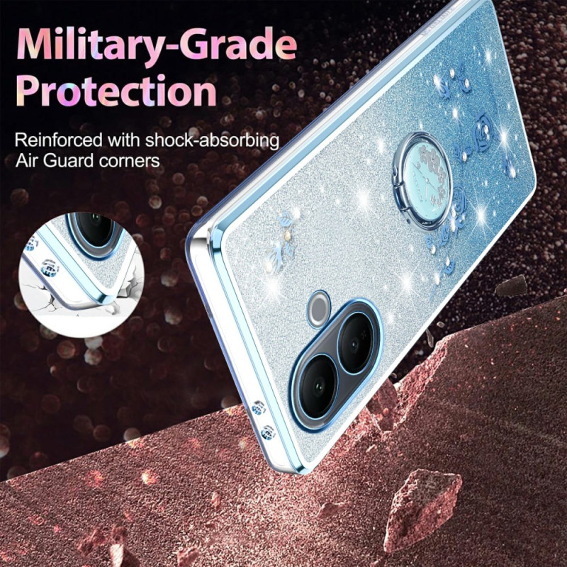 Bescherm je Vivo V60 Lite in stijl met dit sprankelende hoesje versierd met eeuwige bloemen en strassteentjes. De geïntegreerde draaibare ring zorgt voor handsfree kijken en een betere grip voor optimaal dagelijks gebruik.