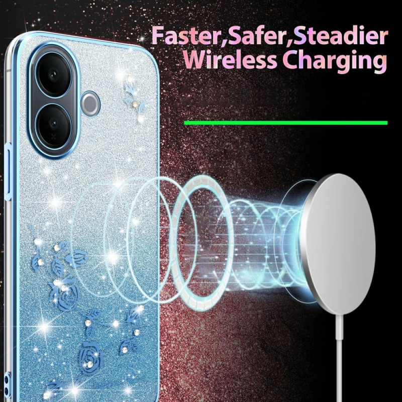Bescherm je Vivo V60 Lite in stijl met dit elegante hoesje met een eeuwige bloem en fonkelende strassteentjes. Het glinsterende glitterontwerp geeft je telefoon een glamoureuze, trendy touch en biedt tegelijkertijd bescherming.
