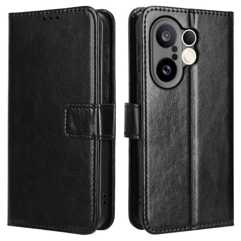 Elegante portemonnee van eersteklas PU-leer met verouderingseffect. Voorzien van 3 kaartsleuven, geldvak en veilige magneetsluiting. Geïntegreerde uitklapbare standaard voor handsfree bekijken en handriem.