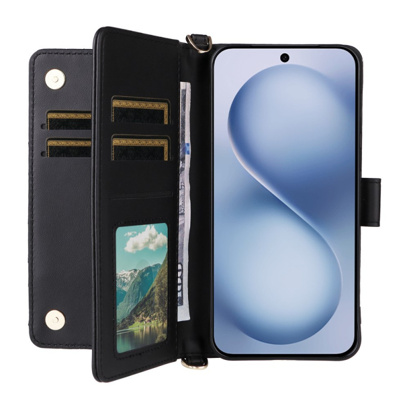 Multifunctionele portemonnee hoes voor vivo X200 FE 5G met verstelbare standaard, afneembare schouderriem en handriem. Voorzien van 6 kaartsleuven en veilige magnetische sluiting. Volledige bescherming tegen stoten en krassen.