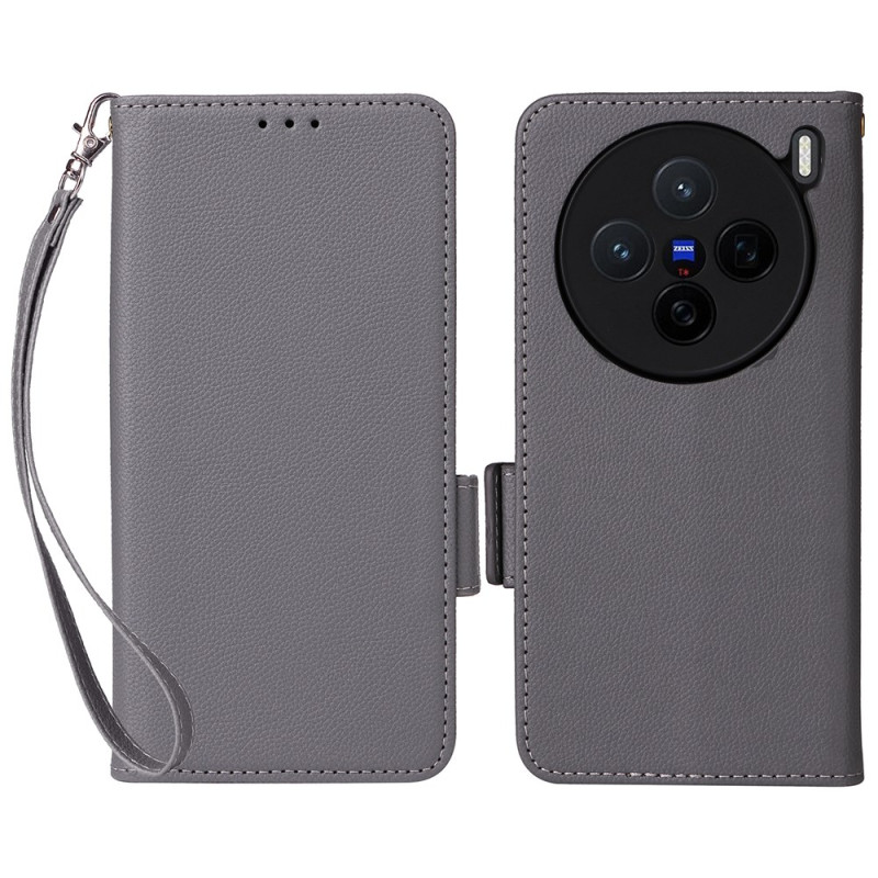 Stijlvolle portemonneehoes van PU-leer met lycheestructuur voor de Vivo X200 5G. Inclusief kaartsleuven, handsfree houder en praktische handriem. Volledige bescherming met veilige magneetsluiting voor optimaal dagelijks gebruik.