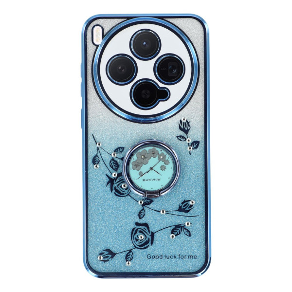 Bescherm je Vivo X300 5G in stijl met dit hoesje versierd met eeuwige bloemen en strassteentjes op een glitterachtergrond met kleurverloop. De geïntegreerde roterende ring zorgt voor een stevige grip en maakt handsfree kijken mogelijk.