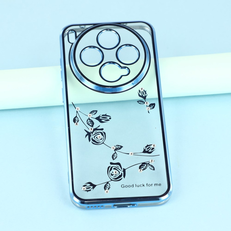 Elegant hoesje voor vivo X300 5G versierd met fonkelende strassteentjes en eeuwige bloemen. Militaire valbescherming tot 3,6 m, draadloos opladen, ultradun ontwerp en perfecte pasvorm.