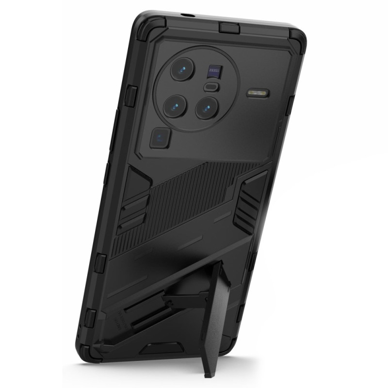 Bescherm je Vivo X80 Pro 5G met deze robuuste, dubbellaagse hoes. Met een onzichtbare uitklapbare kickstand en verstevigde hoekbescherming biedt hij volledige bescherming tegen stoten en vallen, terwijl je toch comfortabel kunt kijken.