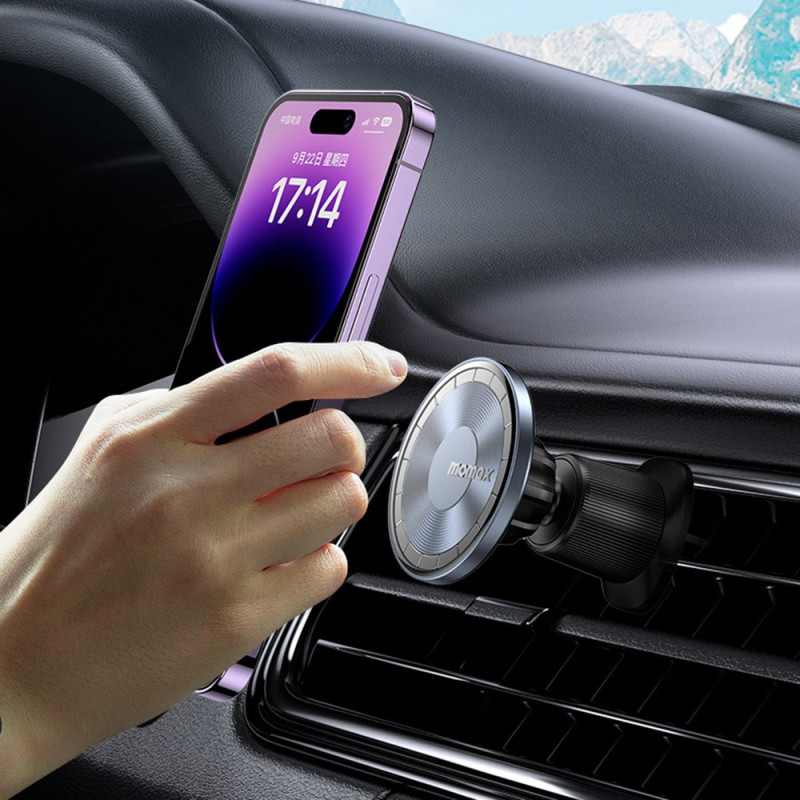 Le support de téléphone magnétique transparent Momax est un accessoire universel pour voiture.