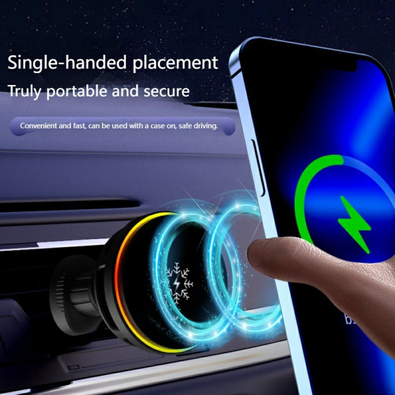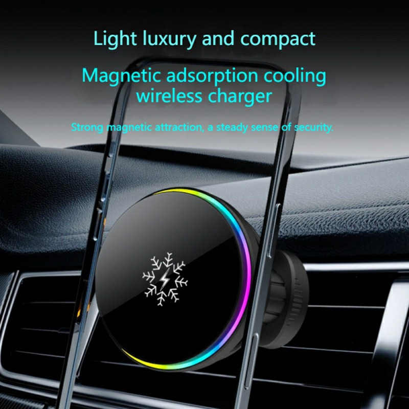 Intelligente 15W magnetische draadloze oplader met actieve halfgeleiderkoeling voor snel en veilig opladen. Nauwkeurige magnetische uitlijning, intelligente temperatuurregeling en aanpasbare RGB-verlichting. Universele ventilatorondersteuning voor zorgeloos browsen, gamen en streamen.