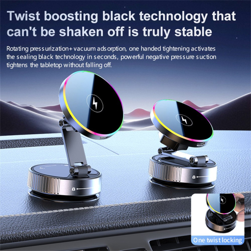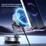 Magnetische draadloze autoladerhouder met 360° panoramische rotatie, 15W snellaadfunctie en krachtige zuignap. Compatibel met iPhone 12-17 en Android. Eenvoudige installatie, veilige bevestiging en duurzame constructie voor onderweg.