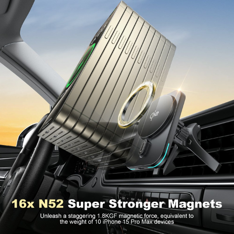 Ontdek de WIWU CH-323 Qi2 MAGO draadloze auto-oplader houder. Geniet van snel opladen tot 15 W met Qi2-certificering, een krachtige magnetische houder en een verstelbare kijkhoek voor veilig rijden.