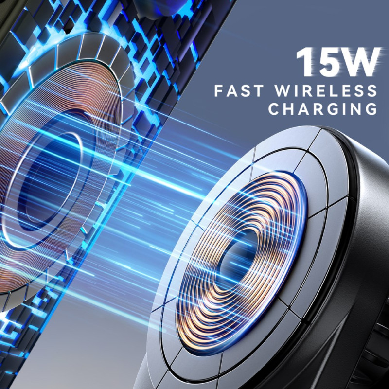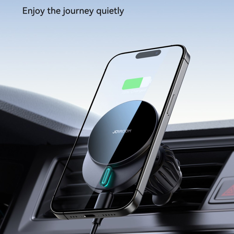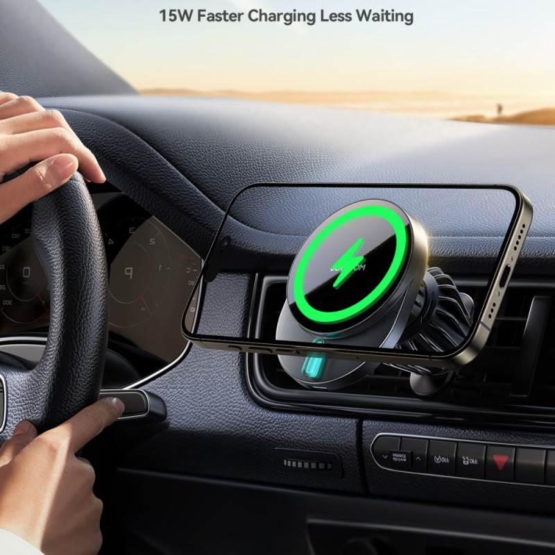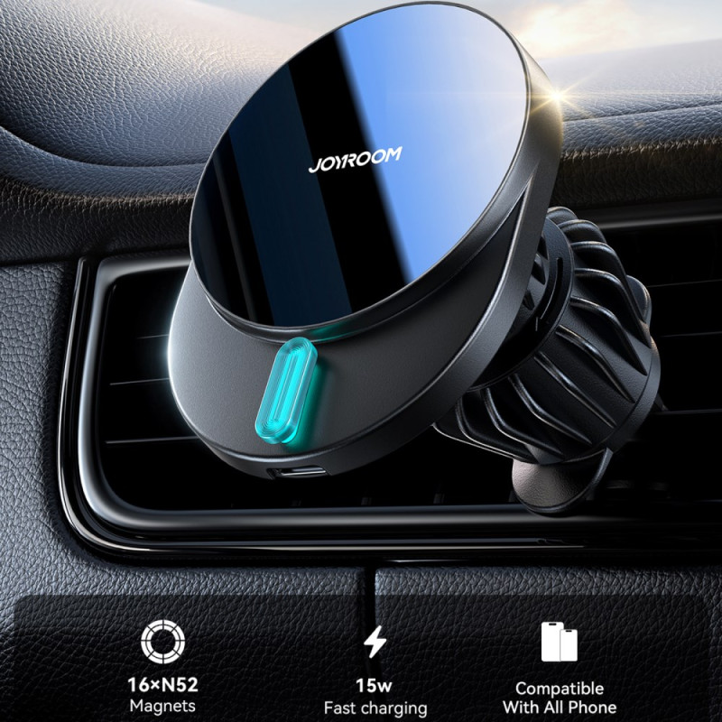 Laad je smartphone in alle veiligheid op met deze 15W draadloze magnetische houder. Wordt veilig bevestigd aan een ventilatierooster, draait 360° en wordt automatisch uitgelijnd voor snel en efficiënt opladen. Bediening met één hand voor extra gemak.