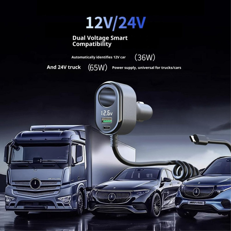 Rechargez jusqu'à 3 appareils simultanément avec ce chargeur voiture haute performance. Profitez de la technologie PD 65W sur deux ports USB-C et d'un port USB-A QC 18W. Équipé d'un écran de tension et d'un câble spirale pratique, il assure une charge rapide et sécurisée dans toutes les conditions de température.
