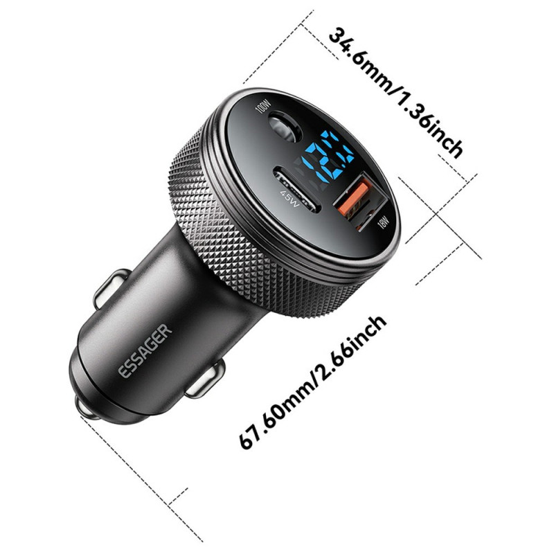 Krachtige 150 W autolader met digitaal display voor real-time controle. Uitgerust met 3 poorten (USB-A, Type-C, DC) om al je apparaten tegelijk op te laden. Intelligente snellaadtechnologie en 6 beschermingsniveaus...