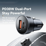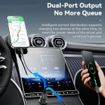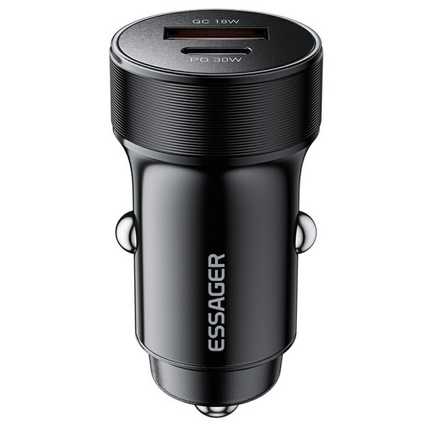 ESSAGER autolader met PD 30W technologie voor ultrasnel opladen. Dubbele USB-A en Type-C poorten met slimme chip voor optimale stroomverdeling. Compatibel met al je apparaten.
