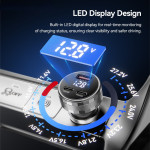 Krachtige 108 W autolader met dubbele 45 W USB-C poort en 18 W USB-A poort. Power Delivery-technologie voor ultrasnel opladen van je apparaten. Geïntegreerd LED-scherm voor real-time controle. Compatibel met smartphones, tablets en laptops.