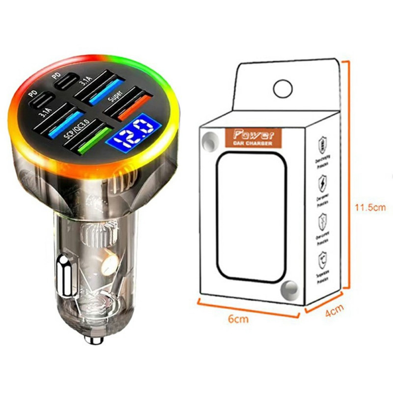 Laad tot 6 apparaten tegelijk op met onze 150W slimme autolader. Met PD- en QC3.0-snellaadtechnologie, een digitaal spanningsbewakingsdisplay en geavanceerde oververhittingsbeveiliging. Hij is compact en universeel en past op al je apparaten voor de beste oplaadervaring onderweg.