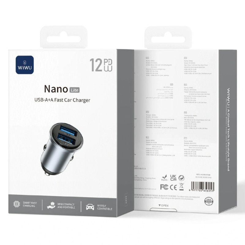 Compacte autolader met dubbele USB QC3.0-poorten voor intelligent snelladen tot 12 W. Elegant, discreet ontwerp dat perfect in je dashboard past. Compatibel met de meeste apparaten en snellaadprotocollen.