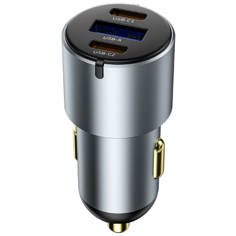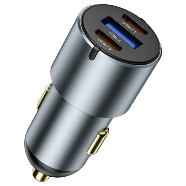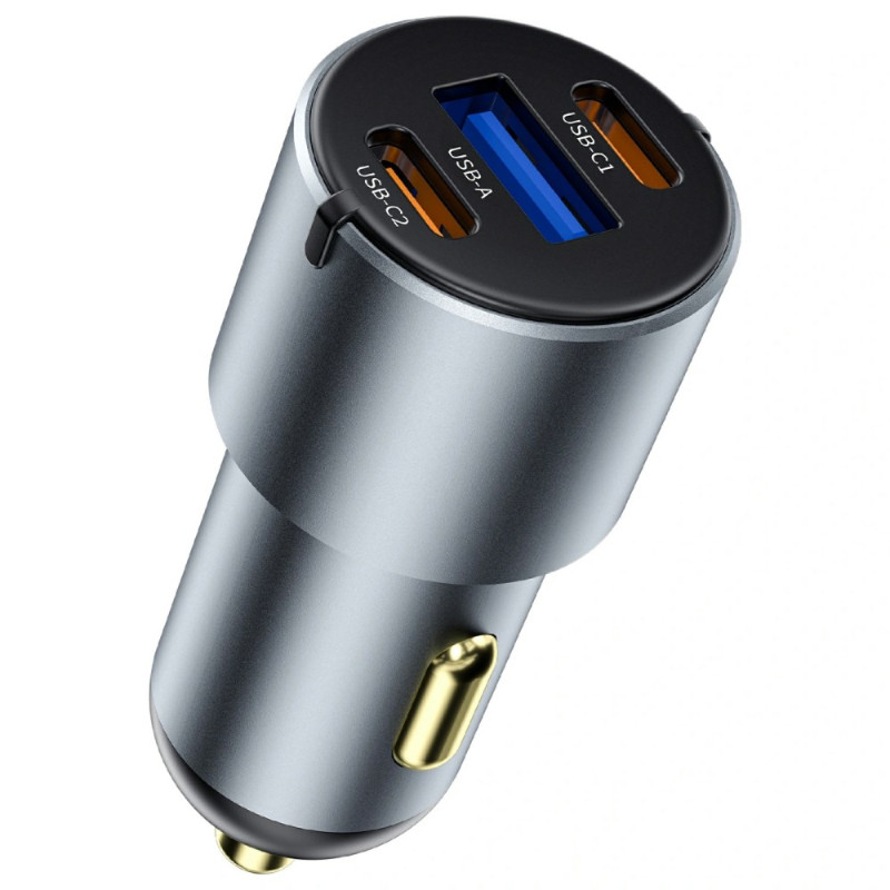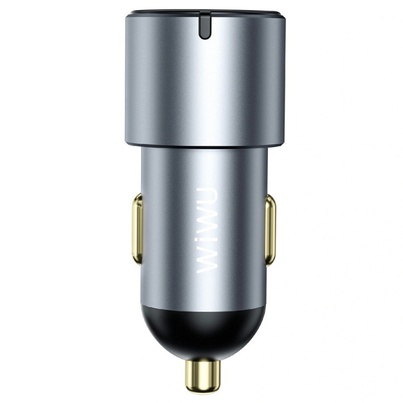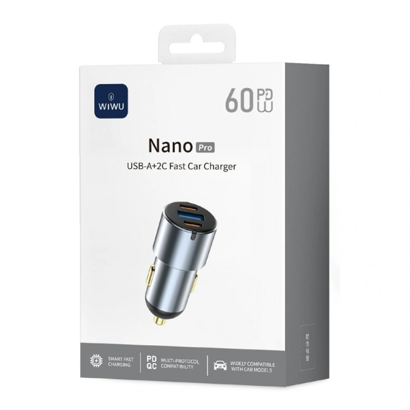 WIWU Nano Pro hoogwaardige autolader met dubbele USB-C en USB-A poorten voor snel opladen tot 60W. Intelligente stroomverdeling tot 30 W per poort voor gelijktijdig opladen van meerdere apparaten...