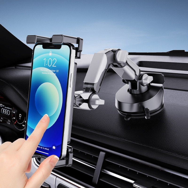 X257 universele standaard met krachtige zuignap en scharnierende arm voor telefoons en tablets. 360° draaibaar voor optimaal gebruik in portret- of landschapsmodus. Compatibel met apparaten van 145-225 mm. Ideaal voor GPS-navigatie, handsfree bellen en veilig entertainment onderweg.