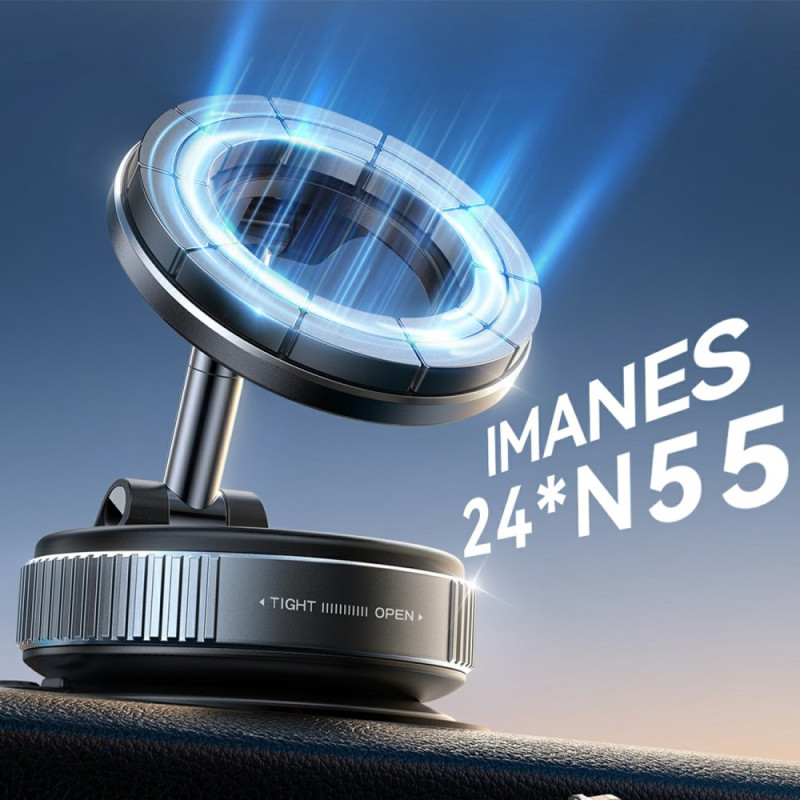Innovatieve MagSafe-compatibele magnetische houder met ultrakrachtige zuignap. Opvouwbaar, roterend ontwerp voor perfecte aanpassing van de kijkhoek. Onmiddellijke installatie in 1 seconde. Ideaal voor veilig rijden met GPS-navigatie.