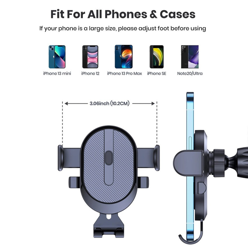 Innovatieve houder voor autotelefoon met ventilatiebevestiging. 3-punts vergrendeling voor optimale stabiliteit op alle terreinen. Met één hand te installeren en te verwijderen in een seconde. 360° rotatie om de hoek aan te passen.