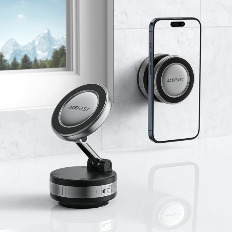 Ontdek de ACEFAST magnetische houder met intelligente elektrische vacuümzuignap. Krachtige, veilige bevestiging dankzij de sterke magneten. Compatibel met alle gladde oppervlakken: dashboard, voorruit, bureau, tegels. Compact, elegant ontwerp voor eenvoudige installatie. De perfecte oplossing om je telefoon onderweg en thuis veilig op te bergen.