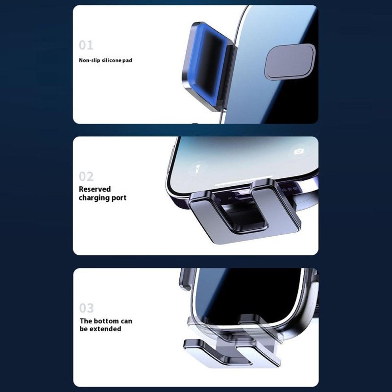 Universele houder met 360° rotatie voor veilig handsfree rijden. Intelligent zwaartekrachtontwerp houdt je smartphone stevig op het luchtrooster. Compatibel met alle telefoons van 4,5 tot 7 inch. Gemakkelijke toegang tot de oplaadpoort.