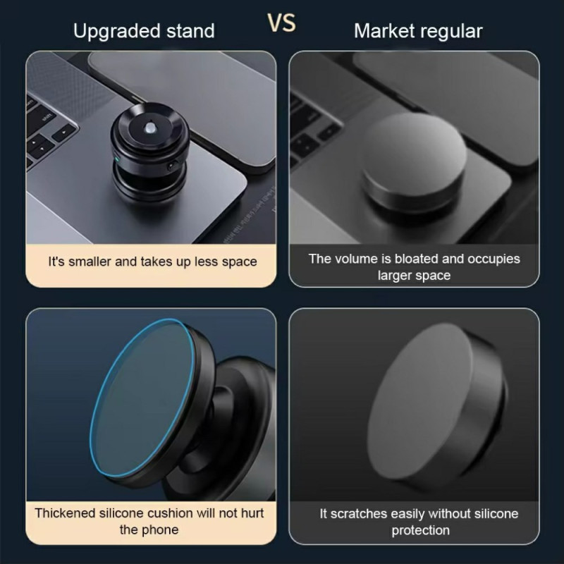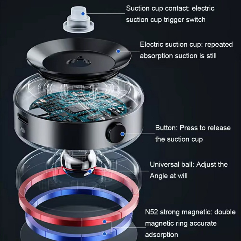 Deze magnetische telefoonhouder biedt een ultraveilige bevestiging dankzij het systeem dat 16 krachtige magneten en dubbele magnetische en vacuümzuigtechnologie combineert. Dankzij de 360° rotatie kan de kijkhoek gemakkelijk worden aangepast voor veilig en comfortabel rijden. Gemaakt van zinklegering en hoogwaardig kunststof, combineert het robuustheid en elegantie om harmonieus te passen in het interieur van de auto. Hij is compatibel met alle smartphones van 4 tot 6,5 inch en kan ook worden bevestigd aan andere gladde oppervlakken zoals een bureau of sportuitrusting.