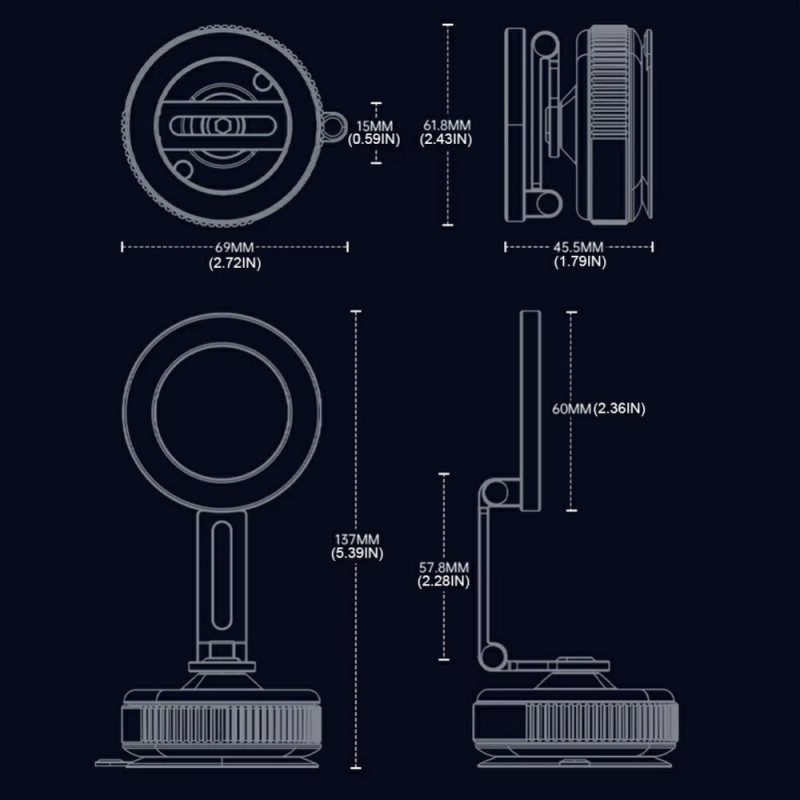 De magnetische houder voor de autotelefoon biedt een ultraveilige bevestiging en maximale flexibiliteit voor veiliger rijden. Uitgerust met 16 krachtige magneten en een dubbel vacuümzuigsysteem zorgt hij voor een perfecte grip op het dashboard of de voorruit, zelfs op ruwe wegen. Dankzij de 360° rotatie kan de kijkhoek gemakkelijk worden aangepast in portret- of landschapsmodus. Hij is gemaakt van een lichtgewicht, duurzame aluminiumlegering met antislip siliconen kussentjes en houdt elke smartphone van 4,7 inch stevig vast zonder risico op krassen.