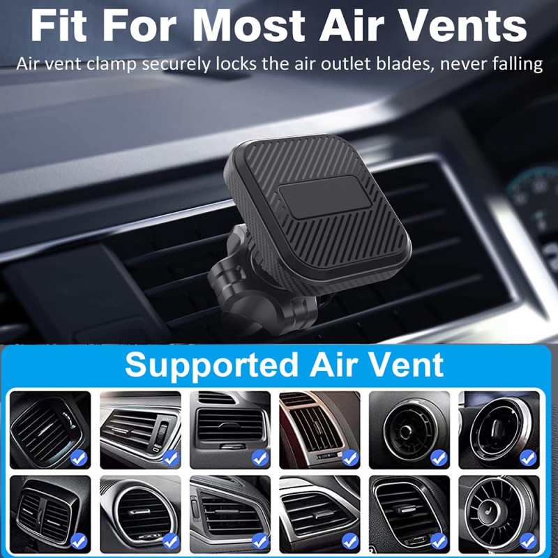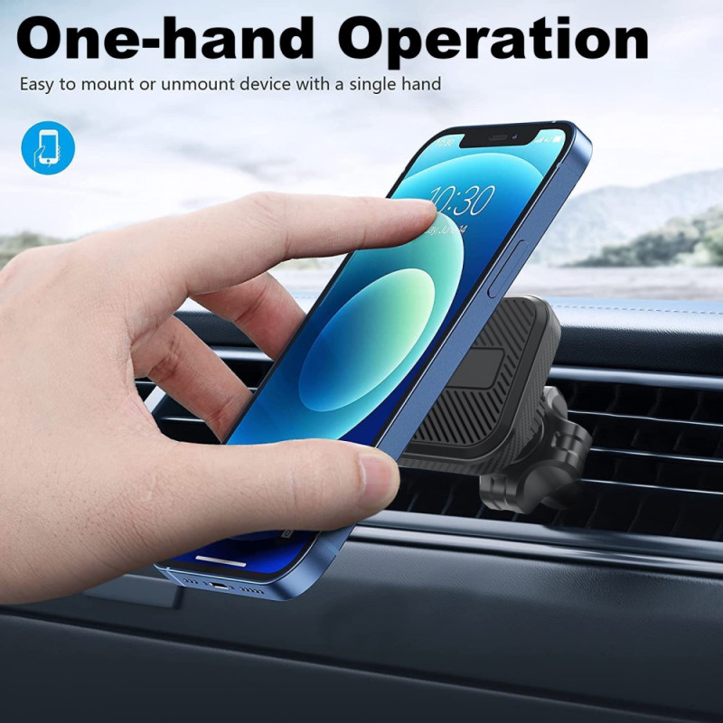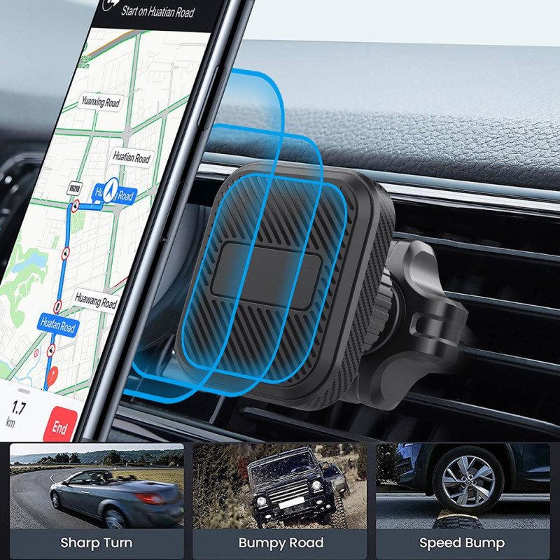 De 360° roterende magnetische houder voor ventilatieroosters in de auto combineert functionaliteit, veiligheid en een compact ontwerp. Dankzij de 4 geïntegreerde magneten houdt hij je smartphone stevig vast, zelfs op oneffen wegen. Dankzij het 360°-draaisysteem kan de kijkhoek vloeiend worden aangepast, zowel staand als liggend. Gemakkelijk te installeren op het ventilatierooster en met één hand te gebruiken voor snelle bediening zonder afleiding. Hij is compatibel met alle smartphones van 4 tot 7 inch en biedt een elegante en stabiele oplossing voor handsfree navigeren of bellen.