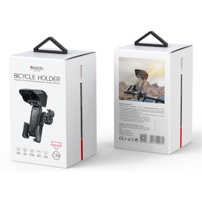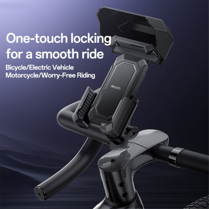 Duidelijke navigatie en bescherming van het scherm zijn geoptimaliseerd voor omstandigheden met fel licht met deze YESIDO houder. Deze professionele houder lost zichtbaarheidsproblemen op met zijn geïntegreerde zonnescherm, zodat je de telefoon zelfs in de felle zon of lichte regen kunt gebruiken. Het driehoekige ontwerp en het vergrendelingsmechanisme met één knop zorgen voor absolute stabiliteit voor je smartphone (4,7 tot 6,8 inch) op oneffen terrein. Hij is gemaakt van duurzaam PC+ABS-materiaal en past op sturen van 20 tot 34 mm. Met één hand kun je het apparaat snel en veilig verwijderen.
