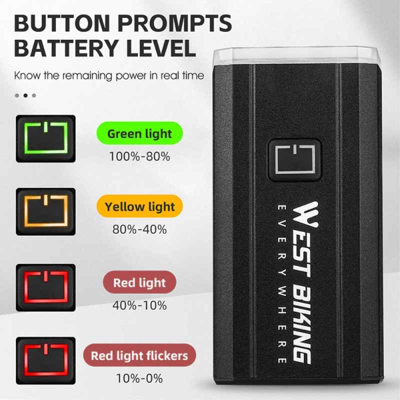Betrouwbare verlichting en weerstand tegen extreme omstandigheden vormen de kern van het ontwerp van deze WEST BIKING lamp. De behuizing van aluminiumlegering zorgt voor een efficiënte warmteafvoer en een grotere duurzaamheid, waardoor de lamp bestand is tegen alle weersomstandigheden dankzij de IPX6-waterproef. Met 1000 lumen garandeert de lamp helder zicht over lange afstanden, essentieel voor nachtelijke veiligheid. De 4400mAh batterij biedt een uitgebreide autonomie, aangevuld met vijf verlichtingsstanden (inclusief SOS) om aan te passen aan elke situatie. Het snelmontagesysteem maakt installatie eenvoudig en handig.