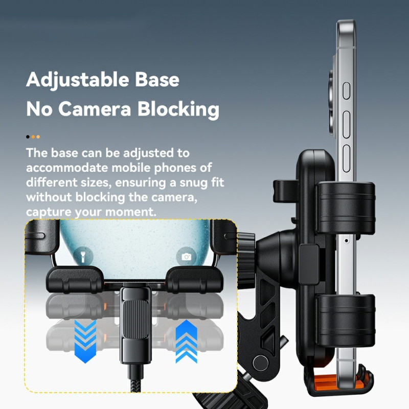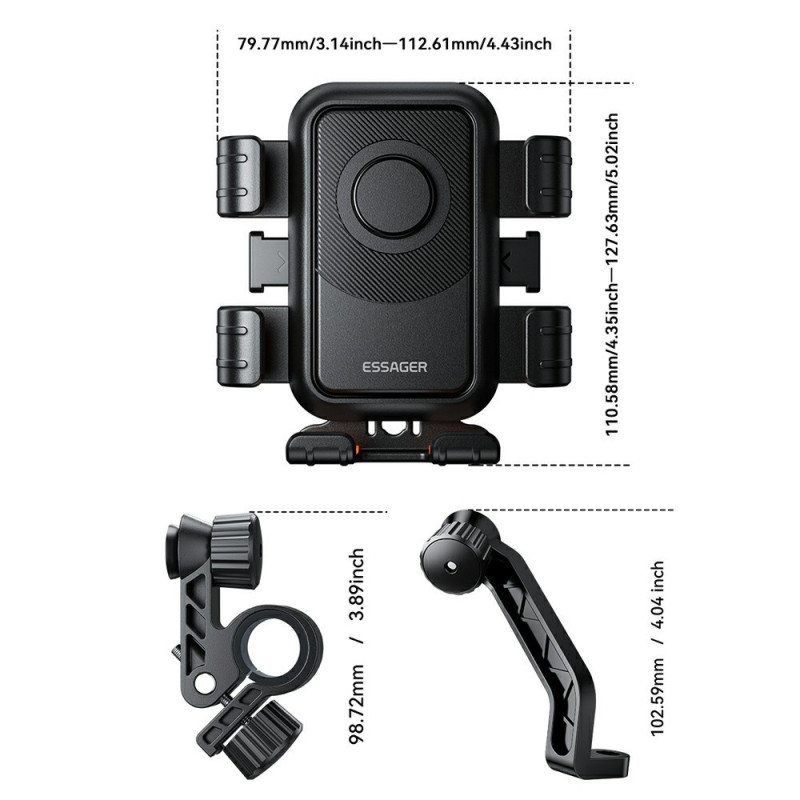 De ESSAGER spiegelbevestiging is dubbel vergrendeld voor absolute veiligheid en gebruiksgemak. Hij is ontworpen voor motorrijders en fietsers en garandeert de stabiliteit van je smartphone (4,7 tot 6,9 inch) dankzij het rubberen antislipmechanisme en het versterkte bevestigingssysteem. Dankzij de bediening met één hand kun je de telefoon in alle veiligheid plaatsen of verwijderen, zonder je van de weg af te leiden. De 360 graden rotatie zorgt voor een perfecte aanpassing van de kijkhoek. De verstelbare voet past op veel verschillende telefoonmodellen, zelfs met een dikke behuizing.