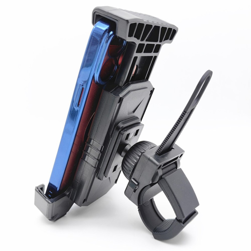 Om optimale stabiliteit en toegankelijkheid voor je smartphone te garanderen, is deze houder ontworpen met een robuuste bevestigingsstructuur. Het klemmechanisme zet het apparaat (tot 9,8 cm breed) stevig vast op het stuur en voorkomt dat het eruit valt. De geïntegreerde antislipkussentjes beschermen de telefoon tegen krassen en absorberen trillingen. Dankzij de 360 graden rotatie kunnen gebruikers de ideale kijkhoek voor GPS-navigatie instellen. Bovendien zorgt een speciaal oplaadgat ervoor dat het apparaat tijdens lange ritten continu van stroom kan worden voorzien.
