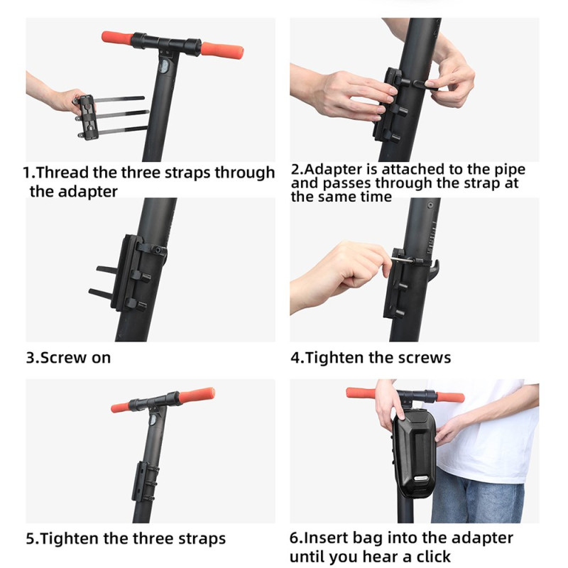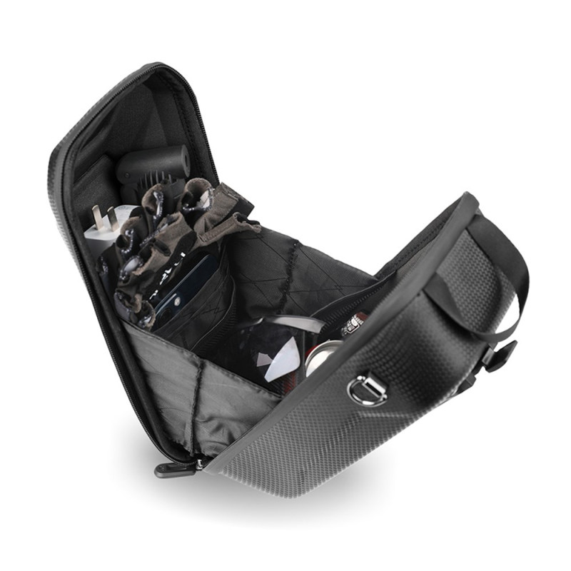 Deze tas, ontworpen voor een naadloze overgang tussen elektrische scooter en kantoor, is de modulaire opbergoplossing. De harde EVA buitenkant biedt bescherming tegen schokken en vallen. Het adaptersysteem met rits maakt snelle installatie en verwijdering van het stuur mogelijk. De draagriem en schouderband maken het gemakkelijk om de tas om te vormen tot een tas voor woon-werkverkeer. Het interieur is georganiseerd in meerdere compartimenten voor een efficiënte scheiding van je spullen, met een intrekbare sleutelring voor directe toegang. De tas kan veilig worden bevestigd met een universeel drie-bandensysteem.