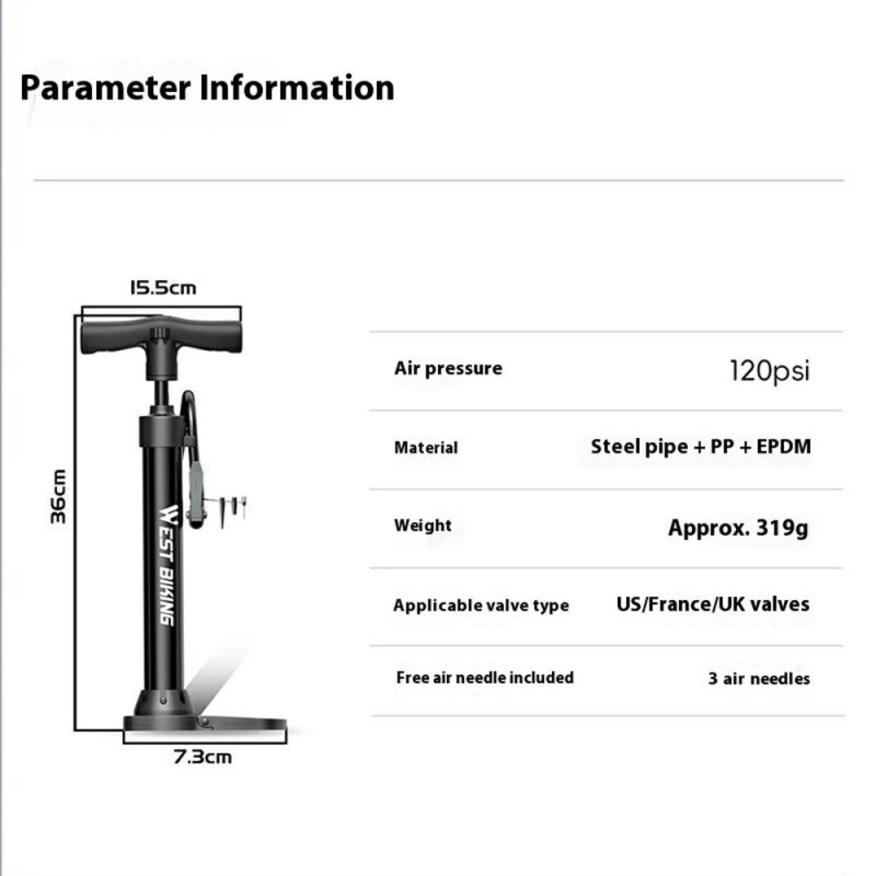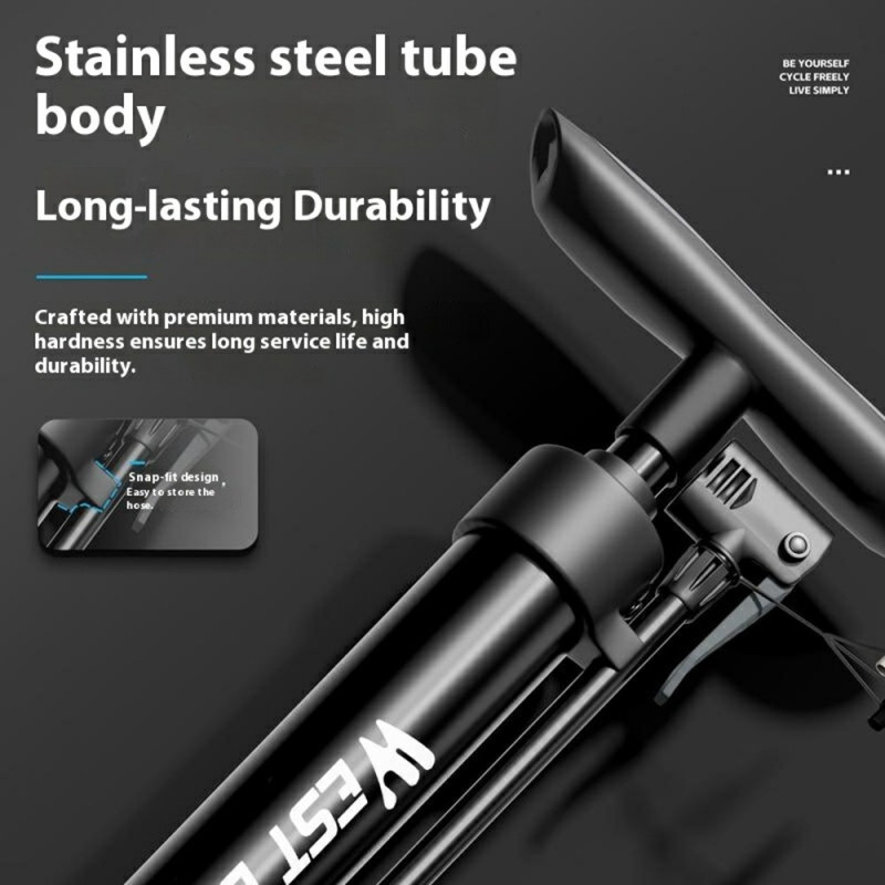 Deze pomp is ontworpen voor maximale efficiëntie bij het oppompen en is gebaseerd op een zeer sterke stalen structuur. Hij is bestand tegen een druk tot 120 PSI, waardoor hij ideaal is voor banden die een hoge druk vereisen (racefietsen). De veelzijdigheid wordt gegarandeerd door de universele compatibiliteit met Presta, Schrader en Dunlop ventielen, voor alle soorten fietsen, motorfietsen en elektrische voertuigen. Het handvat is afneembaar, waardoor het gemakkelijk op te bergen en op te pompen is. Dit apparaat is een onmisbare hulp voor thuisonderhoud en op reis.