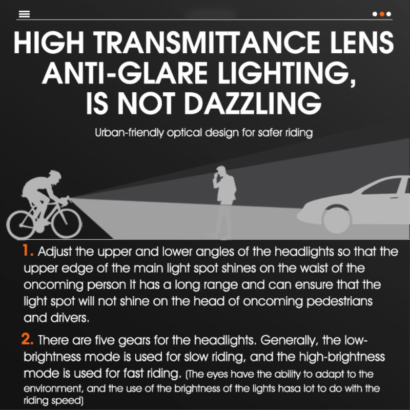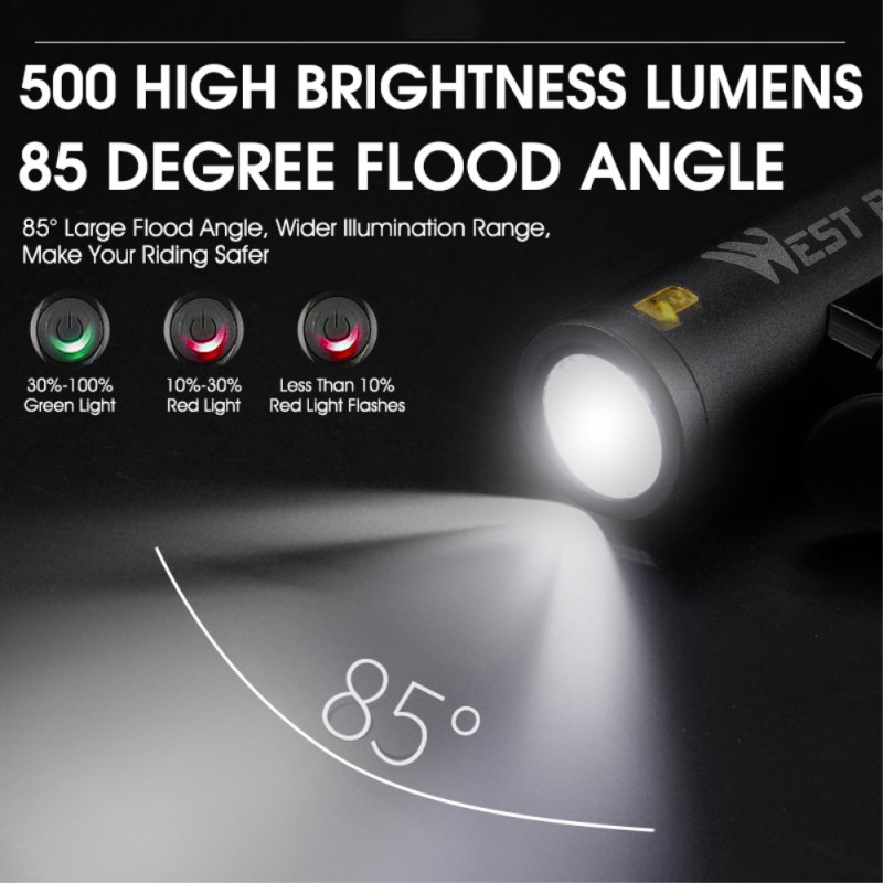 De combinatie van 500 lumen vermogen en groothoekverlichting garandeert een aanzienlijke verbetering van de veiligheid 's nachts. Deze koplamp gebruikt een T6 LED voor een lichtbundel van 200 meter met een bereik van 85 graden. De behuizing van matte aluminiumlegering is ontworpen voor maximale sterkte en duurzaamheid. De geïntegreerde 2000mAh batterij biedt een lange runtime, waardoor de frequentie van opladen geminimaliseerd wordt. Het apparaat heeft een IPX5-certificaat en is dus weerbestendig. Er zijn vijf verlichtingsmodi beschikbaar, waardoor hij geschikt is voor alle fietsomgevingen.