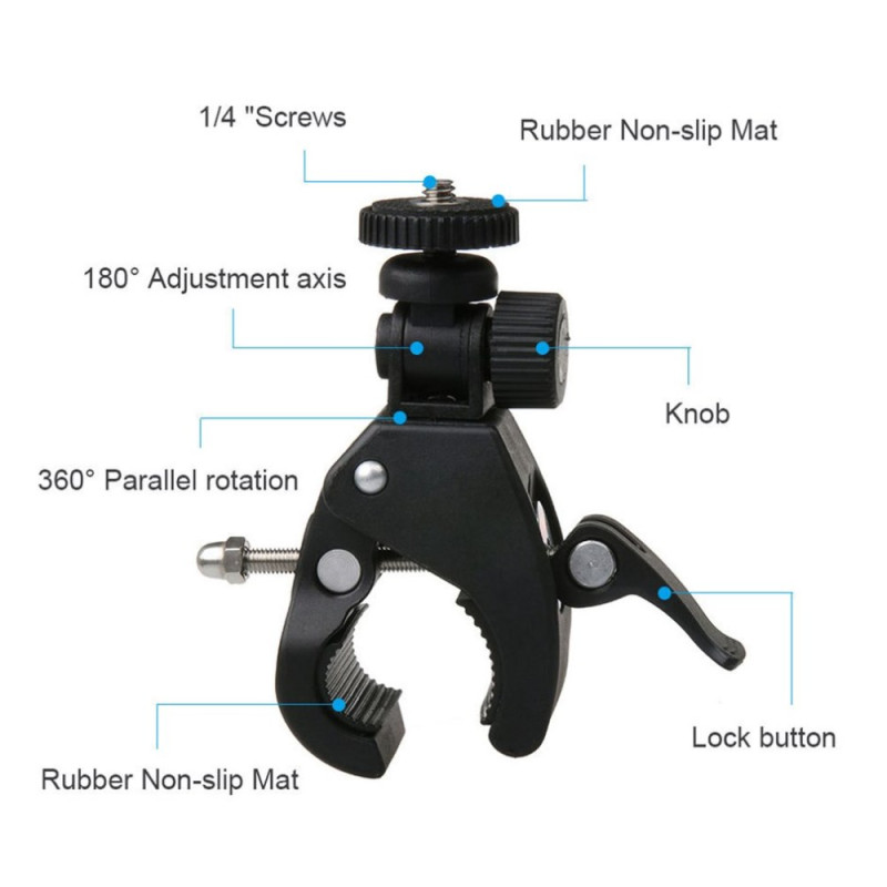 Pour capturer des séquences vidéo stables et changer rapidement d'angle, la flexibilité et la rapidité d'installation sont primordiales. Ce support de guidon offre un ajustement multi-directionnel de 180 degrés pour immortaliser vos scènes sous différents points de vue. La pince à dégagement rapide permet une installation et un démontage instantanés. Doté d'une interface à vis standard 1/4, il est compatible avec toutes les principales marques de caméras d'action (GoPro Hero, Xiaoyi, etc.). Malgré son poids léger (0.13KG), il supporte une charge allant jusqu'à 2.5KG, garantissant la stabilité de l'enregistrement.