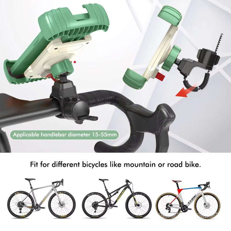 Van motoren tot kinderwagens en fietsen, deze universele houder is de meest flexibele aanpassingsoplossing op de markt. Hij is gemaakt van ABS en siliconen en bevestigt telefoons van 4,7 tot 7,2 inch dankzij een betrouwbare vergrendeling aan de achterkant en een antisliplaag. De gebogen klauwen zijn ontworpen om nooit het scherm of de knoppen te blokkeren, waardoor de toegang tot functies wordt geoptimaliseerd. Dankzij de 360 graden draaibare kop kun je de kijkhoek snel en nauwkeurig aanpassen. Hij past stevig op alle sturen met een diameter tussen 15 mm en 55 mm.