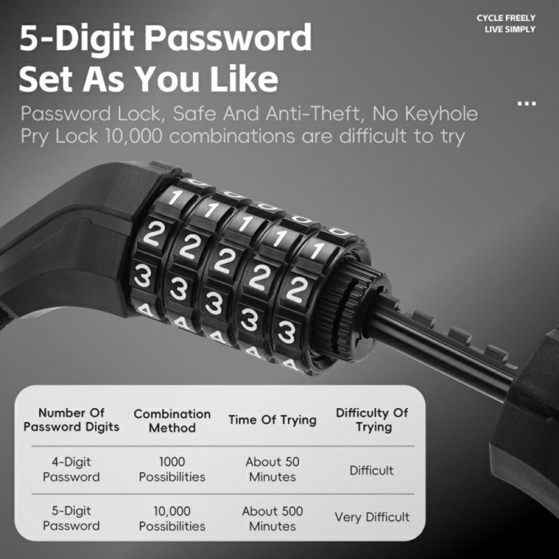 Het krachtige combinatiesysteem van dit antidiefstalsysteem zorgt voor sleutelloze beveiliging en doeltreffendheid tegen diefstal. Het vijfcijferige slot maakt sleutels overbodig en biedt 100.000 combinaties voor een hoge mate van bescherming. De interne staalkabel is versterkt voor maximale duurzaamheid. De buitenlaag van polypropyleen beschermt het frame van je fiets tegen krassen en voelt aangenaam aan bij koud weer. De kop van zinklegering zorgt voor een robuust mechanisme. De lengte van 60 cm en het compacte ontwerp maken hem ideaal voor dagelijks transport.