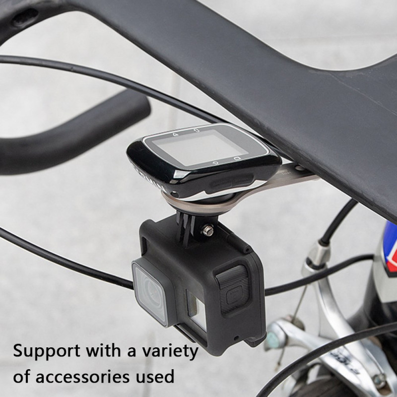 De titaniumlegering van deze centrale steun, die is voorbehouden voor hangers uit één stuk, biedt een stevige basis voor gegevens- en video-opnamen. Hij is gemaakt van een aluminiumlegering met een titanium frame en biedt uitzonderlijke stevigheid zonder de cockpit te verzwaren (52 g). De centrale positie maakt stuurruimte vrij en optimaliseert de kijkhoek van fietsgegevens. De houder is compatibel met alle Garmin-computers, maar ook met Wahoo en Bryton. Een lagere houder maakt uitbreiding naar een standaard actiecamera mogelijk.