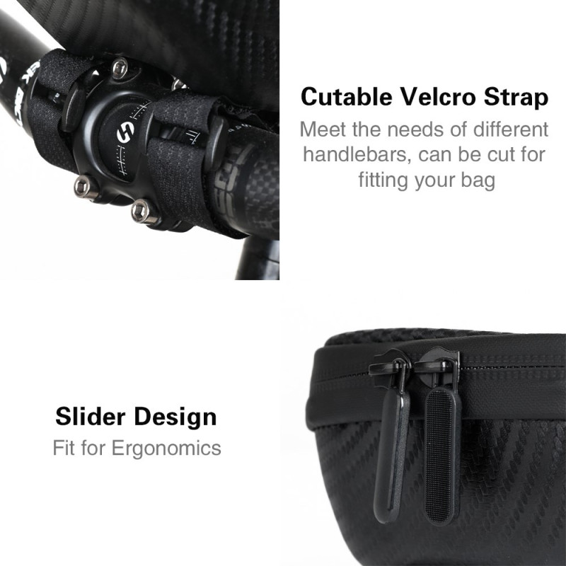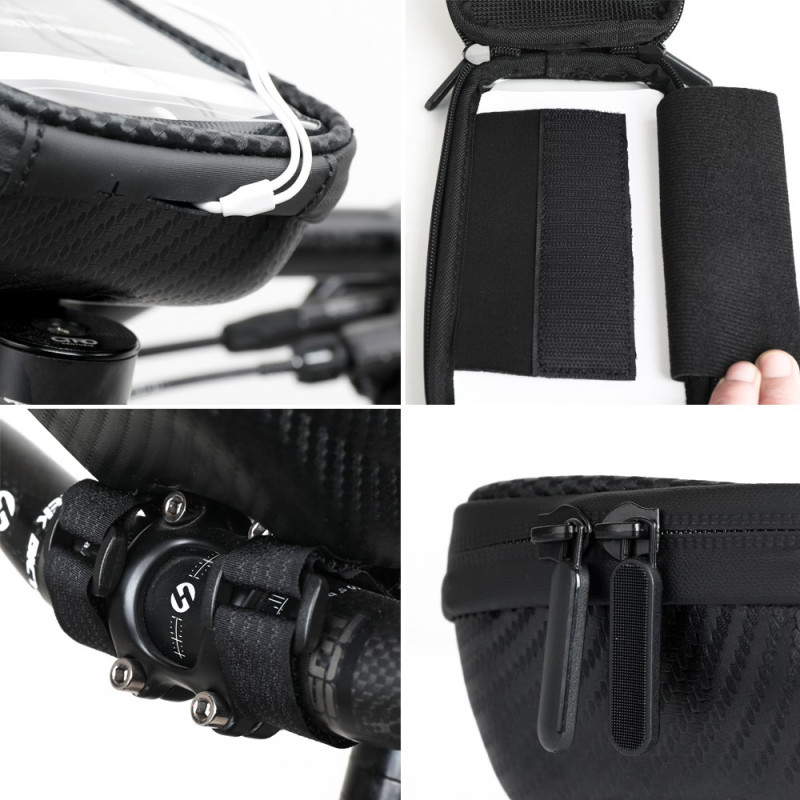 Continue interactie met navigatie en bescherming van apparaten worden gegarandeerd door het geïntegreerde ontwerp van deze tas. Hij is gemaakt van PU en een stijf EVA hoesje en biedt uitstekende weerstand tegen slijtage en schokken. Dankzij de zeer gevoelige TPU-folie kan de smartphone worden bediend zonder deze uit de houder te halen. De waterdichte dubbele ritssluiting garandeert de integriteit van de inhoud bij nat weer. Binnenin is er genoeg ruimte voor een externe batterij, een reparatieset en je persoonlijke spullen. Verstelbare riemen zorgen voor een stevige, stabiele grip op het fietsframe.