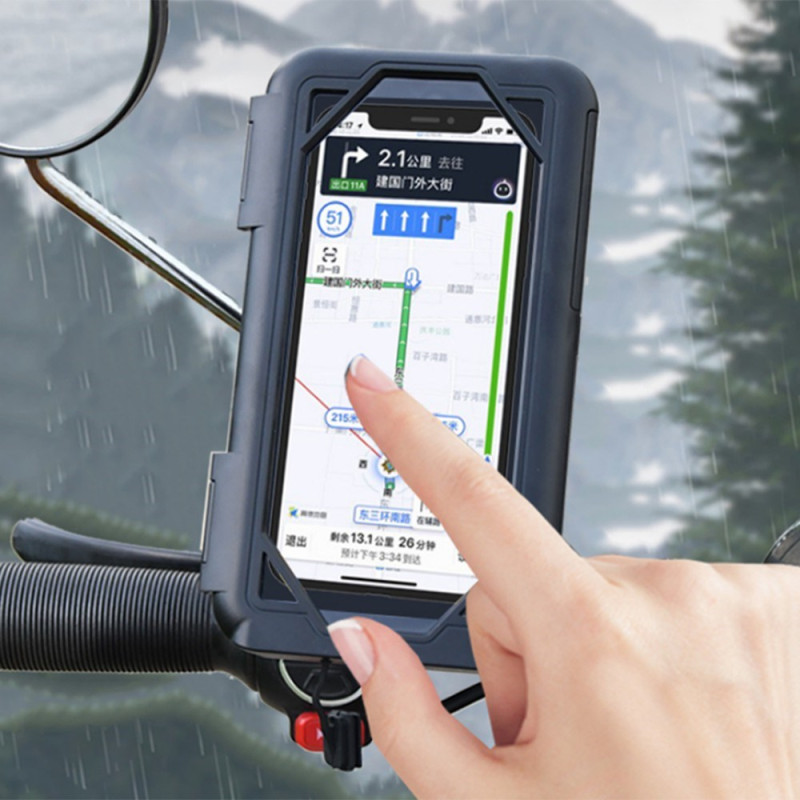 Permettre la capture d'images sans compromettre l'étanchéité : c'est l'atout majeur de ce support de téléphone pour guidon. Le boîtier scellé protège efficacement votre appareil (4 à 6.5 pouces) de la pluie et de la poussière grâce à son joint en silicone. La fenêtre transparente à l'arrière permet l'utilisation de l'appareil photo, vous assurant de ne manquer aucun paysage. Un orifice de charge est réservé en bas pour l'alimentation continue du dispositif. Sa construction en ABS et EVA assure une bonne résistance aux chocs. Il s'installe facilement sur les vélos, motos et vélos électriques.